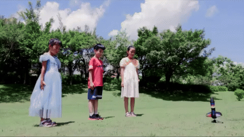 It goes two heights, high and very high! Like 200 feet high! Great fun with small kids, it’s just a propeller, so pretty safe although I wouldn’t touch it when launching, it spins very fast. Worth a purchase though, it’s fun