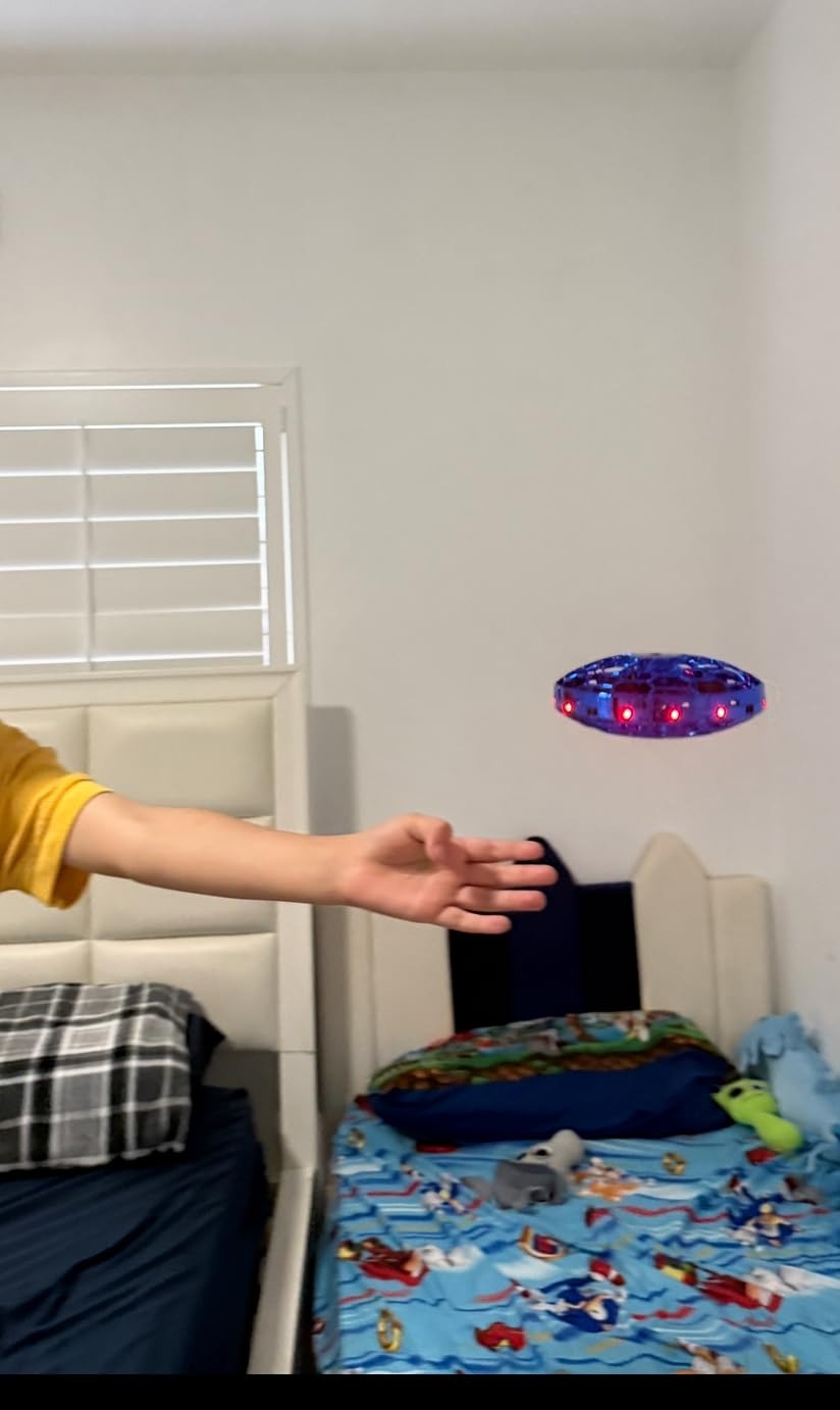 I got this hand-operated drone for my nephew, and he absolutely loves it! It’s easy to use — just toss it up and guide it with your hands. The motion sensors work great, and the LED lights make it look super cool, especially in the dark. It’s small, safe, and tough — it’s crashed a few times and still flies perfectly. Battery life is decent, and it charges fast. Perfect indoor toy and a great gift for kids of all ages!